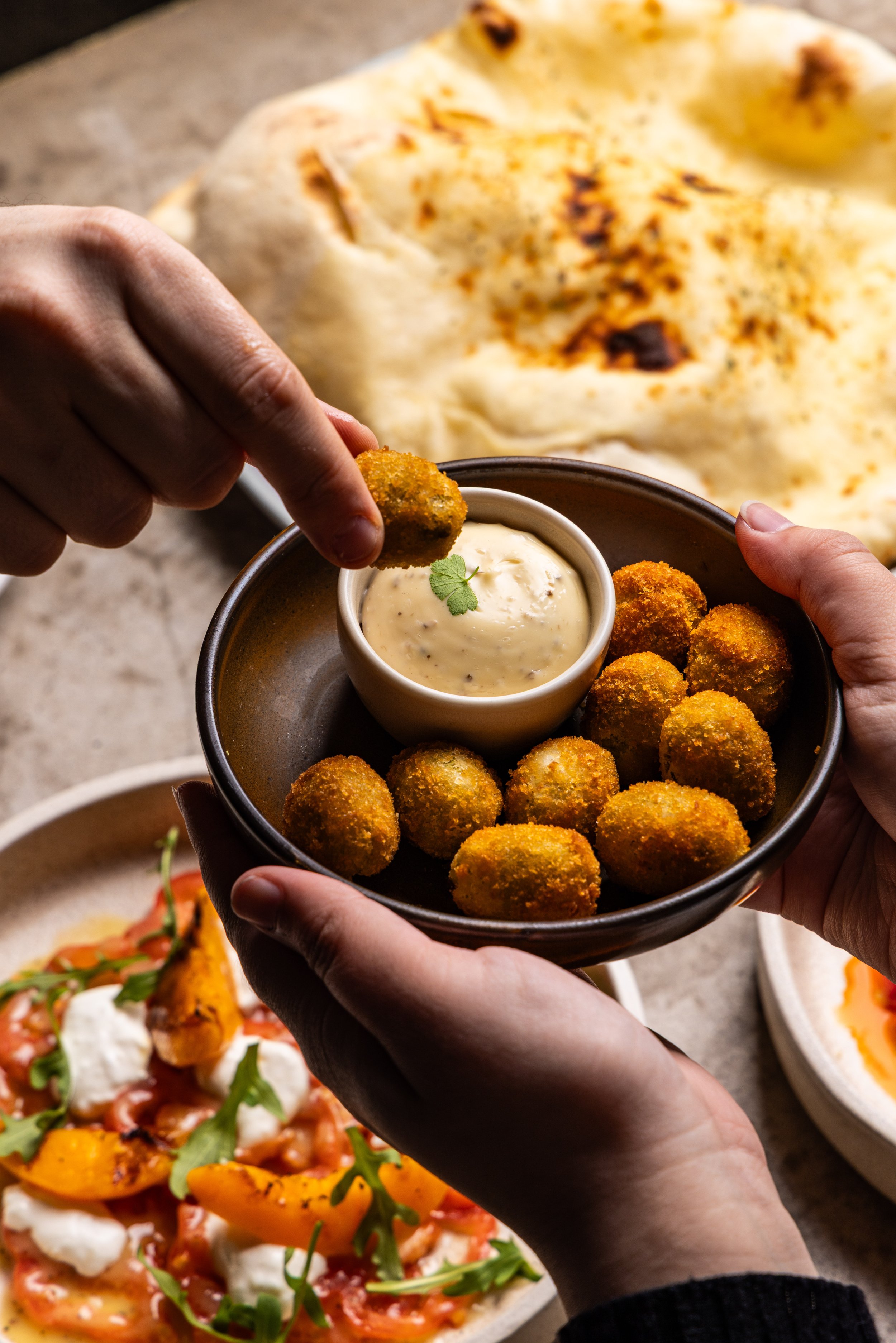 Shadow Slider: Carefully lift the shadows slightly to reveal important details (like the texture of the steak or the fold of the flatbread) without making the image look flat or muddy.